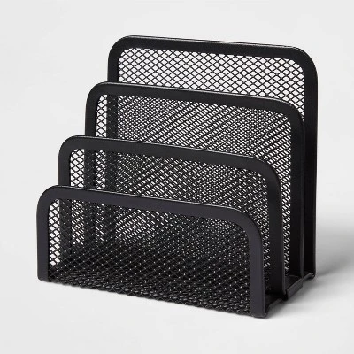 Keeping your mail, bills and other papers sorted is a breeze with this Mesh Letter Sorter from Brightroom™. Featuring a steel mesh frame with three ascending rows, this letter sorter provides you with plenty of storage space and makes it easy to keep different types of papers separate. The black finish pairs easily with any room’s existing color scheme, and the tiered design adds visual interest — and best of all, it comes pre-assembled to save you precious time.