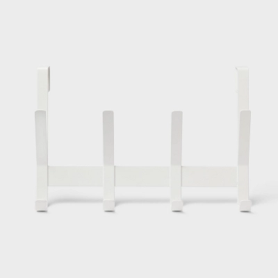 Add a stylish organization option to your home decor with the Over-The-Door Hook from Brightroom™. This white hook rack comes with four hooks to give you ample space for bags, scarves and more. Made of steel in a powder-coated finish, it helps you save space, while maintaining an organized home.