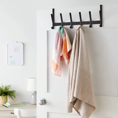 Keep a tidy home and enjoy a convenient spot for your essentials with the Over-The-Door Hook from Brightroom™. This black hook rack has six hooks for ample space for bags, scarves, and more. Made of steel in a powder-coated finish, it helps you save space while maintaining an organized home.